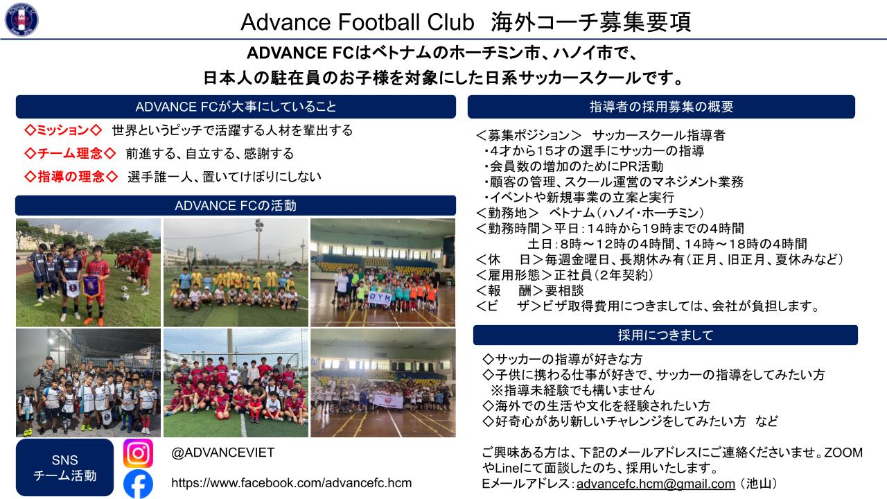 Advance Foot Ball Clubとは、ベトナム(ハノイ・ホーチミン)に拠点をおく、日系サッカースクールです。